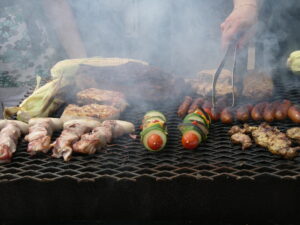 L’apéritif est offert. Ensuite, on partage les mets et boissons apportés par chacun. Un barbecue est à disposition pour griller viandes, brochettes et légumes!